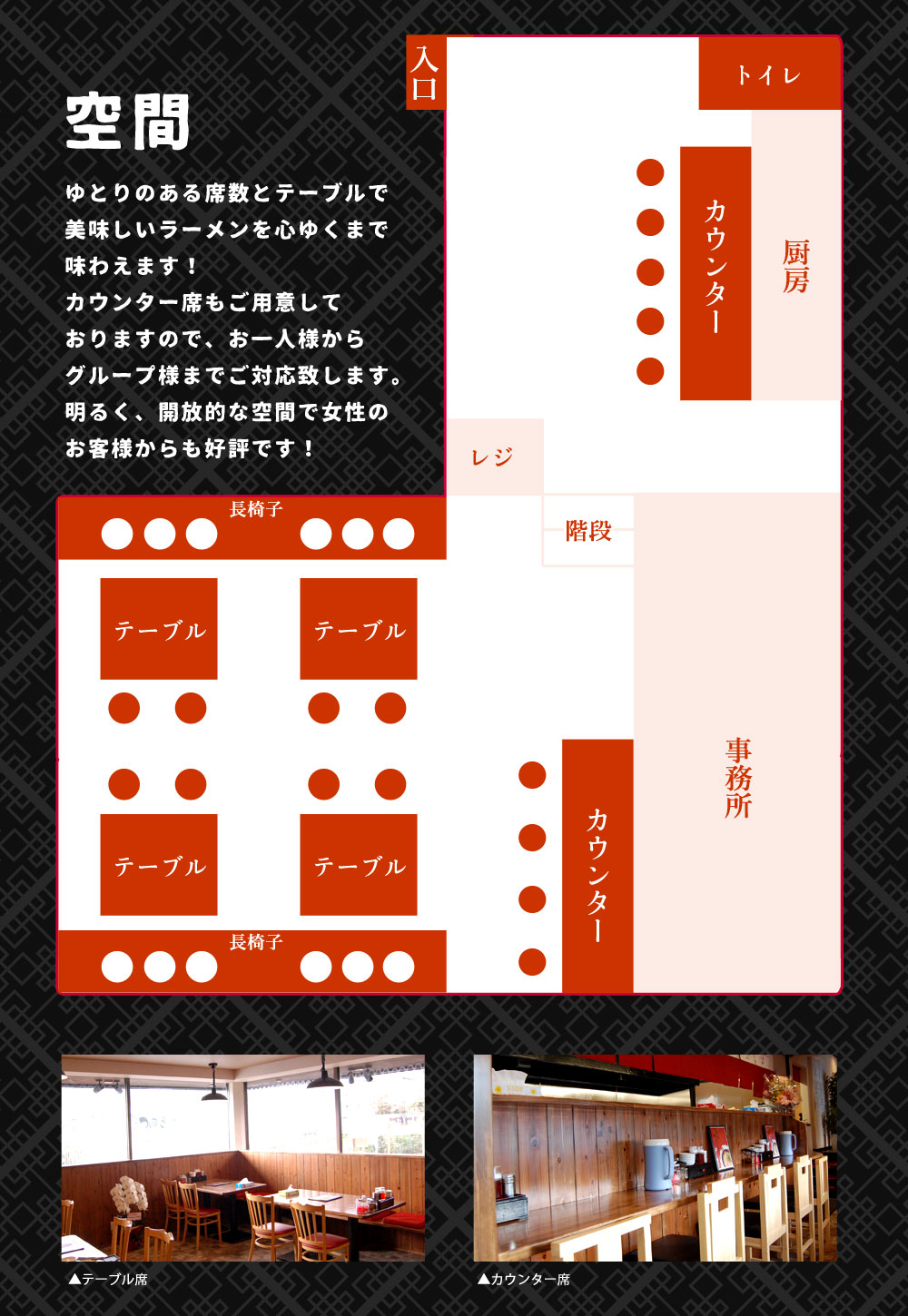 明るく開放的な空間で、旨いラーメンをお楽しみください!